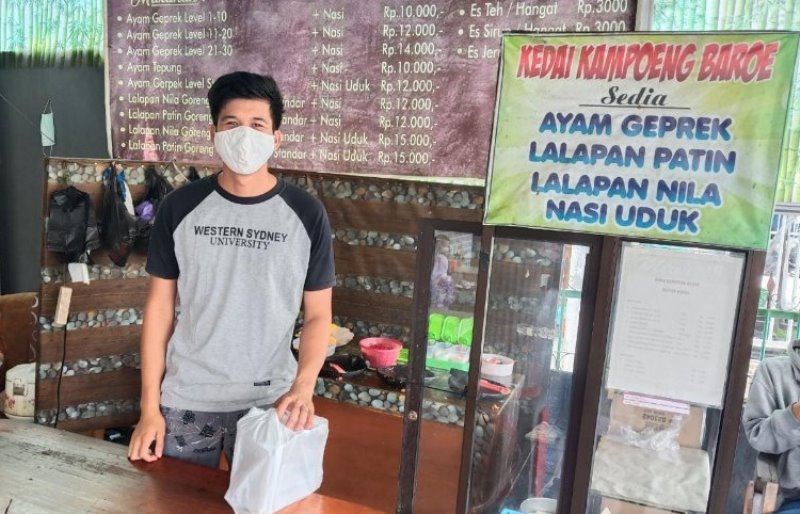 “Sejak Pembatasan Sosial Berskala Besar (PSBB) lalu, sangat menurun pendapatan kami. Untuk bertahan hidup terpaksa kami mengurangi bahan yang kami jual ke pelanggan,” tuturnya.