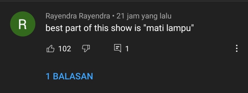 “best part of this show is “mati lampu”,” tulis Rayendra Rayendra.