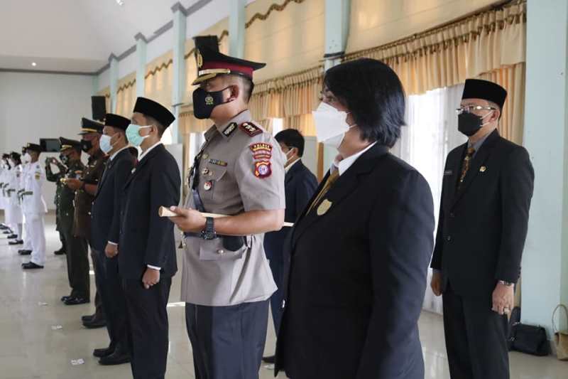 Anggota DPRD Kabupaten Gumas Iceu Purnamasari dan lainnya saat menghadiri pengukuhan anggota Paskibraka Kabupaten Gumas, di GPU Damang Batu Kuala Kurun, Minggu (15/8/2021). (Foto : Protokol dan Perjalanan Setda Gumas)