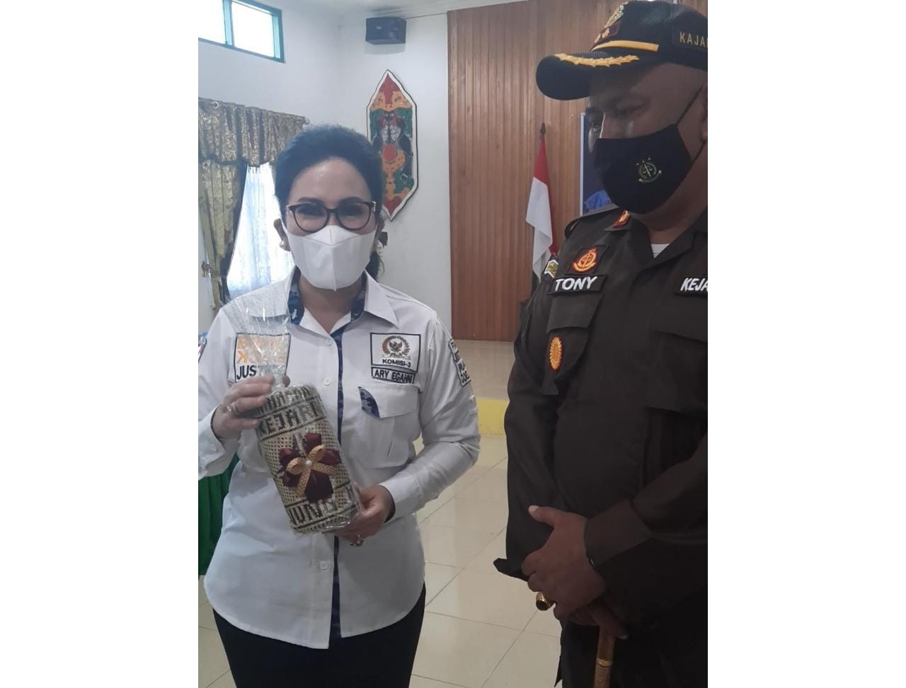 Awalnya Ary Egahni menyerahkan cendera mata berupa plakat kepada Kajari Gumas, Anthony. Anthony lalu menyerahkan cendera mata kepada Ary Egahni, sembari meminta maaf karena tidak bisa memberikan plakat.