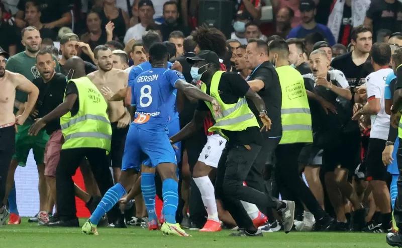 Kemenangan 3-2 Marseille dalam laga pembuka musim melawan Montpellier dua pekan lalu juga tertahan ketika suporter melempari lapangan dengan botol.