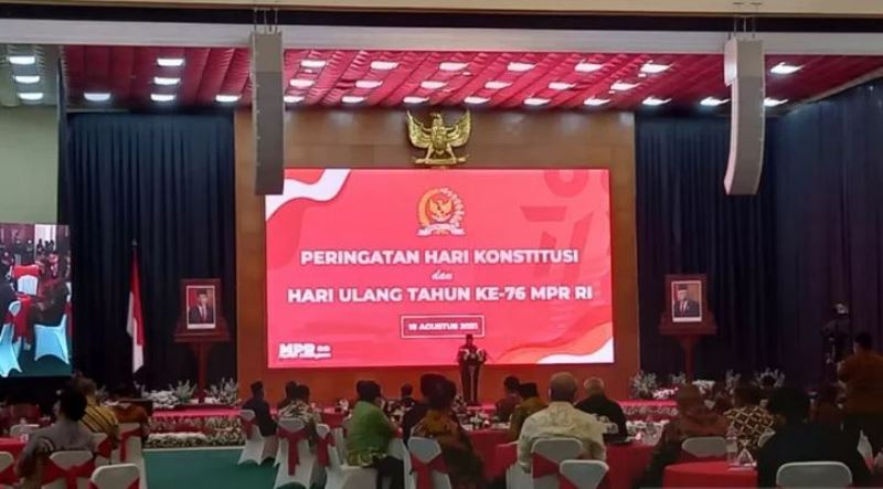 Peringatan Hari Konstitusi dan Hari Ulang Tahun Ke-76 MPR RI, di Kompleks Parlemen, Jakarta, Rabu. (ANT)