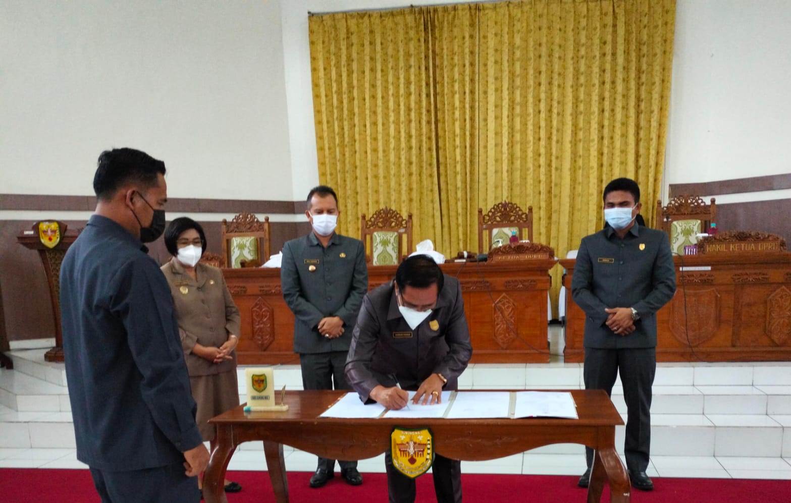 Kesepakatan itu ditandai dengan penandatanganan nota kesepakatan antara Bupati Gumas Jaya S Monong dan Ketua DPRD Akerman Sahidar serta Wakil Ketua I Binartha, dalam rapat paripurna di ruang rapat paripurna DPRD setempat, Senin (16/8/2021).