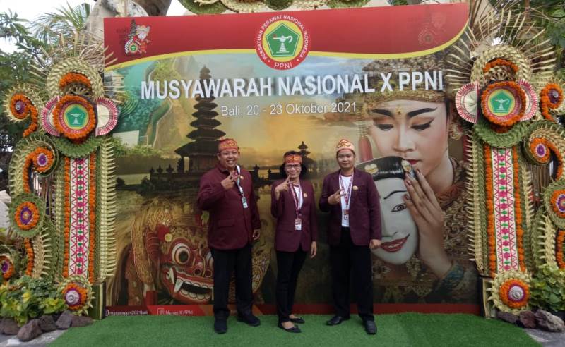 Ketua DPD PPNI Kabupaten Gumas Rahmattambun (kiri) bersama beberapa pengurus saat menghadiri Munas ke X PPNI di Bali, 20-23 Oktober 2021. (MASAPNEWS/Foto DPD PPNI Kabupaten Gumas)
