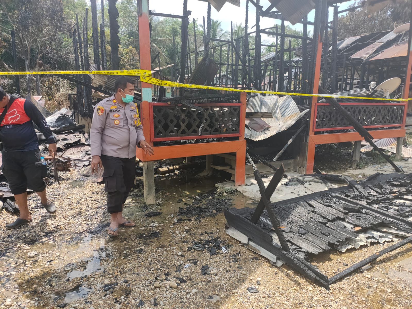 Tak berhenti di situ, pelaku masuk ke dalam rumah serta membakar rumahnya sendiri dengan solar dan korek api. Saat rumahnya terbakar, api merambat ke rumah tetangga yakni rumah milik Wi dan JB.