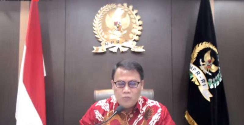 Wakil Ketua MPR Ahmad Basarah dalam ialog kebangsaan bertema “Pancasila dan Penyemaian Spirit Moderasi Beragama di Kalangan Pelajar dan Mahasiswa di Indonesia” yang disiarkan secara langsung di kanal YouTube BPIP RI, dari Jakarta, Senin (18/10/2021) (MASAPNEWS/ANT/Tangkapan layar)