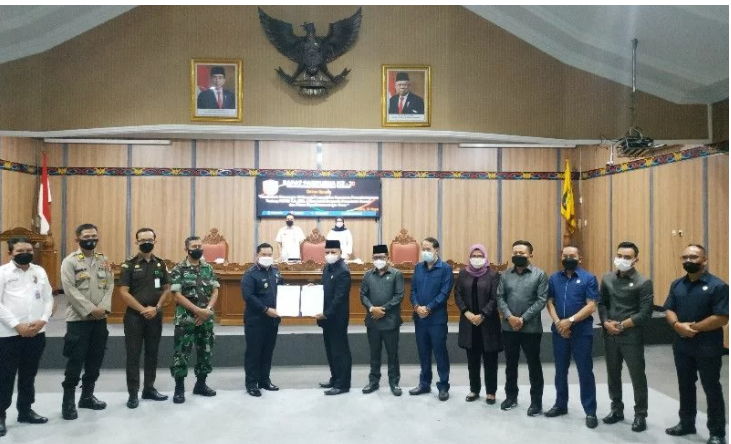 Rapat paripurna dengan agenda penandatanganan persetujuan bersama atas Rancangan Peraturan Daerah tentang APBD tahun 2022 Kabupaten Kotawaringin Timur. Hadir dalam rapat tersebut Bupati Halikinnor, Wakil Ketua II DPRD Hairis Salamad dan anggota dewan setempat.