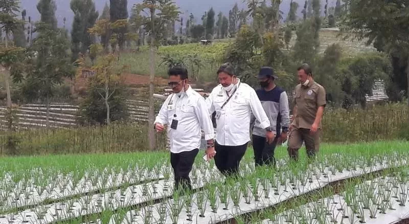 Menteri Pertanian Syahrul Yasin Limpo meninjau tanaman bawang merah sistem "food estate" di Kecamatan Bansari, Kabupaten Temanggung, Kamis (18/11/2021). (MASAPNEWS/ANT)