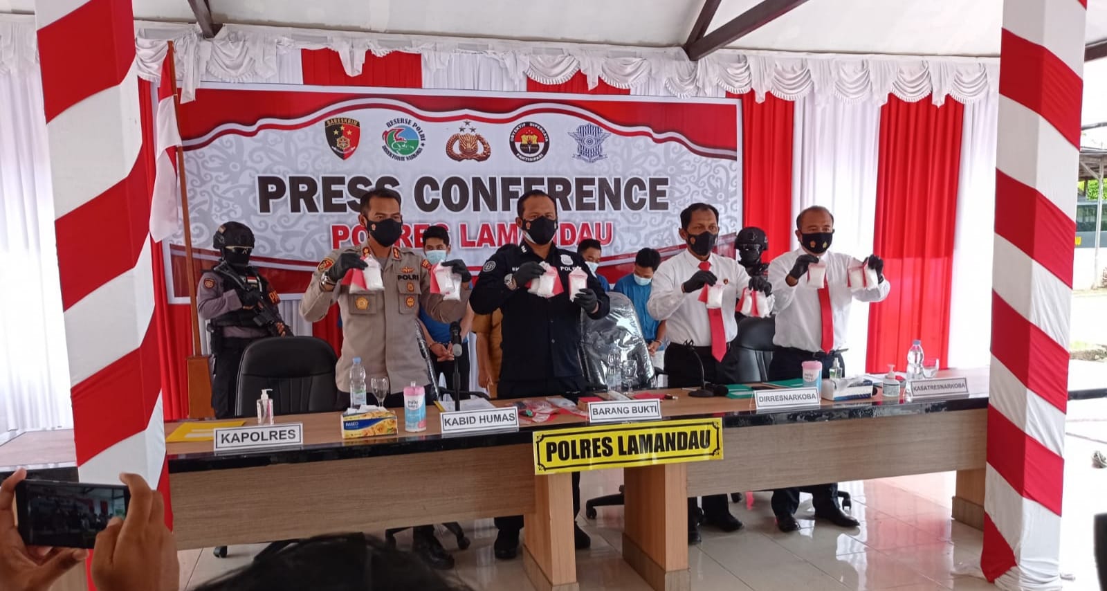 Atas kasus tersebut Polres Lamandau langsung melakukan Konferensi Pers yang di pimpin oleh Kabid Humas Kombes Pol Kismanto Eko Saputro, bersama Dirresnarkoba Polda Kalteng Kombes Pol Nono Wardoyo didampingi Kapolres Lamandau AKBP Arif Budi Purnomo, Kasatresnarkoba Polres Lamandau AKP I Made Rudia di Aula Joglo Polres setempat, Senin (1/11/2021).