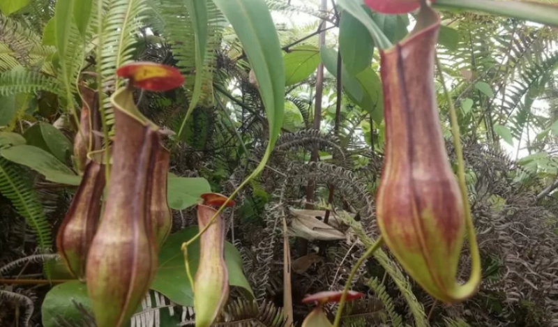 Saat itu, tim menemukan kantong semar yang tumbuh di tebing jalan dan ranting kayu.