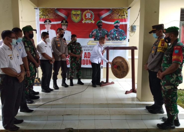 Bupati Gumas Jaya S Monong didampingi Pabung Mayor Inf Idham Khalid dan lainnya saat mencanangkan Kelurahan Tampang Tumbang Anjir, Kecamatan Kurun, sebagai Kampung Berkah, Rabu (8/12/2021). (Foto : Diskominfosantik Gumas)