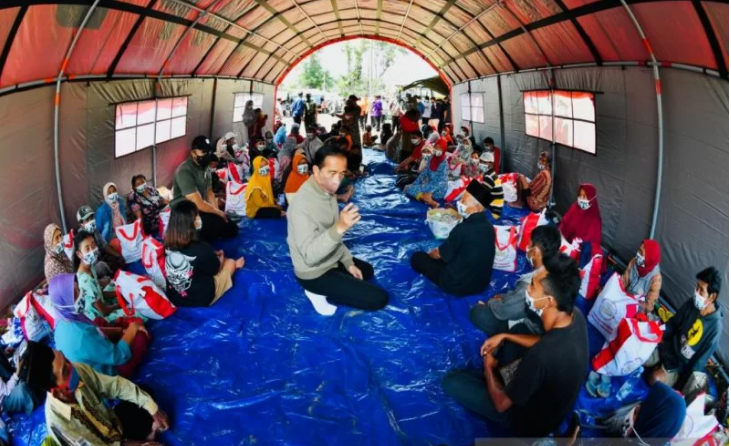 Presiden Jokowi sempat meninjau posko pengungsi di Lapangan Desa Sumberwuluh, Kabupaten Lumajang, Jawa Timur.