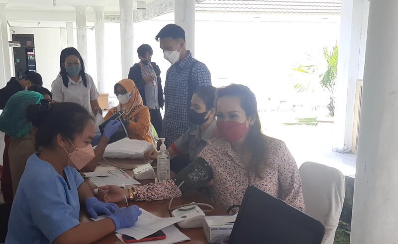 Legislator Kabupaten Gumas Nomi Aprilia menjalani pemeriksaan kesehatan, sesaat sebelum menerima vaksin booster, di kantor DPRD setempat, Selasa (8/2/2022). (MASAPNEWS/GCM)