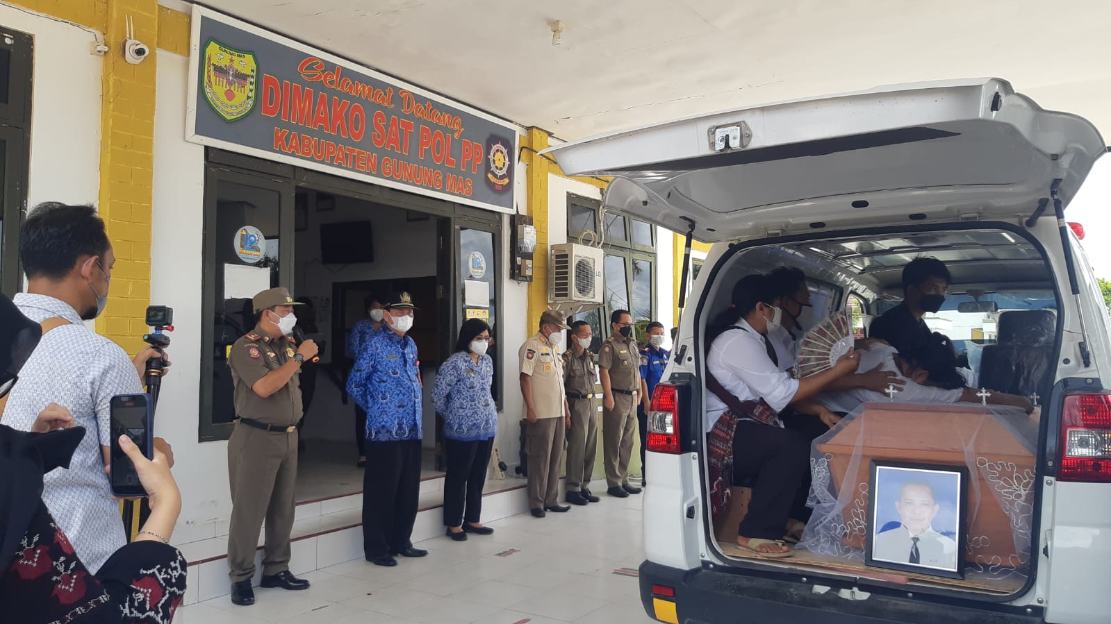 MASAPNEWS – Pemerintah Kabupaten Gunung Mas (Gumas) memberikan penghormatan terakhir untuk Almarhum (Alm) Apriyadi Yusli, S.Sos yang merupakan Aparatur Sipil Neagar (ASN) di satuan Polisi Pamong Praja (Satpol PP) setempat sebagai Kasubbag Kepegawaian.