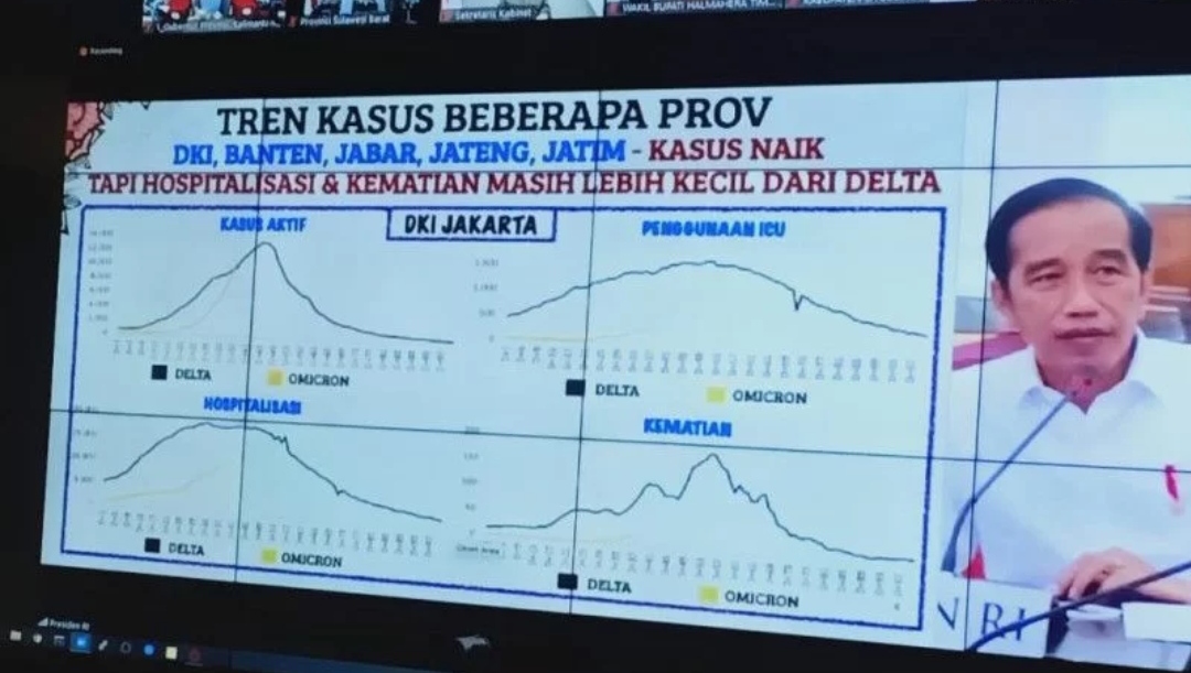 Presiden mengatakan pandemi COVID-19 di Indonesia, sebagaimana perkiraan, sedang menanjak dengan angka kasus positif harian yang mendekati puncak kasus seperti pada Juli 2021. Virus Corona varian Omicron, kata Presiden, memiliki tingkat penularan yang tinggi, namun tingkat fatalitasnya lebih rendah dibandingkan varian Delta.