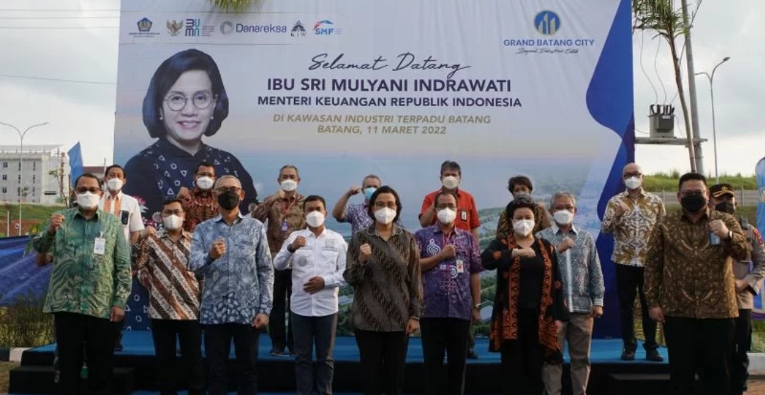 Menteri Keuangan Sri Mulyani (tengah) dalam kunjungan dan penandatanganan komitmen PMN Tahun 2021 PT SMF (Persero) dan PT Kawasan Industri Wijayakusuma (Persero) di Kabupaten Batang, Jawa Tengah, Jumat (11/03/2022). (MASAPNEWS/ANT/HO-SMF)