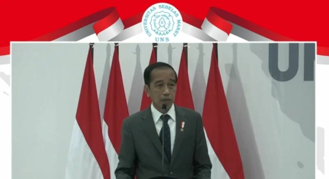 Tangkapan layar Presiden Joko Widodo saat memberikan pengarahan pada Sidang Terbuka Senat Akademik Dies Natalis ke-46 Universitas Sebelas Maret (UNS) yang ditayangkan secara virtual melalui akun Universitas Sebelas Maret, Jumat. (11/3/2022) (MASAPNEWS/ANT)