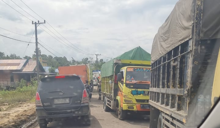 Salah satu pengendara roda empat Fer mengatakan, banyak mobil angkutan, di antaranya angkutan sawit dan batu bara, yang harus antre panjang karena tidak bisa lewat.