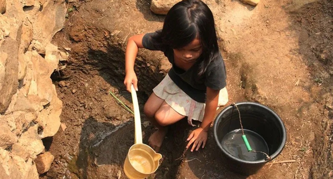 Arsip - Seorang anak warga Cibadak, Lebak, Banten mengambil air di sumur resapan irigasi sawah yang sudah mengering (12/9/2015). (MASAPNEWS/ANT)