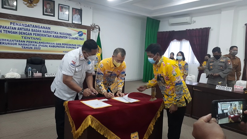 MASAPNEWS – Pemerintah Kabupaten (Pemkab) Gunung Mas (Gumas) menandatangani nota kesepakatan dengan Badan Narkotika Nasional Provinsi (BNNP) Kalimantan Tengah (Kalteng).