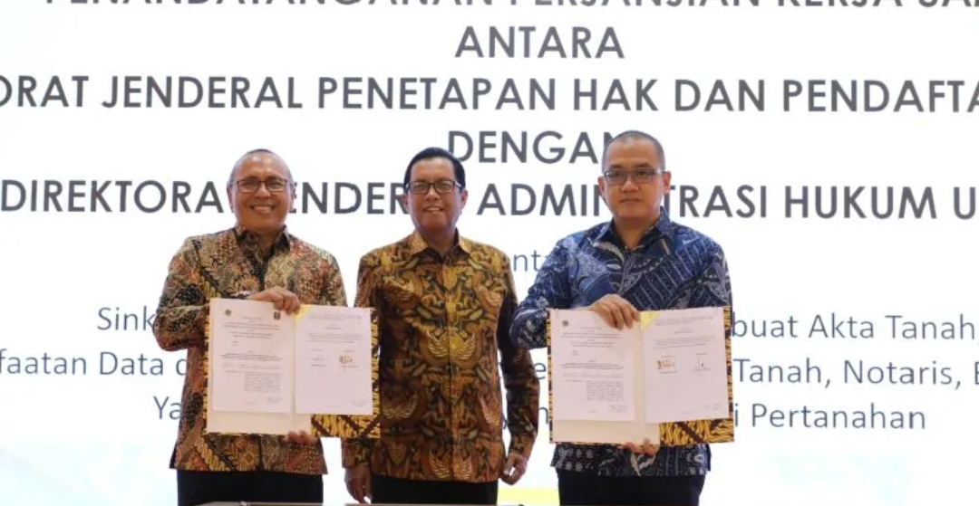 MASAPNEWS – Kementerian Agraria dan Tata Ruang/Badan Pertanahan Nasional (ATR/BPN) menjalin kerja sama dengan Kementerian Hukum & Hak Asasi Manusia (Kemenkumham) dalam rangka mengoptimalkan peran Pejabat Pembuat Akta Tanah (PPAT) dan notaris dalam rangka mempermudah pelayanan kepada masyarakat.