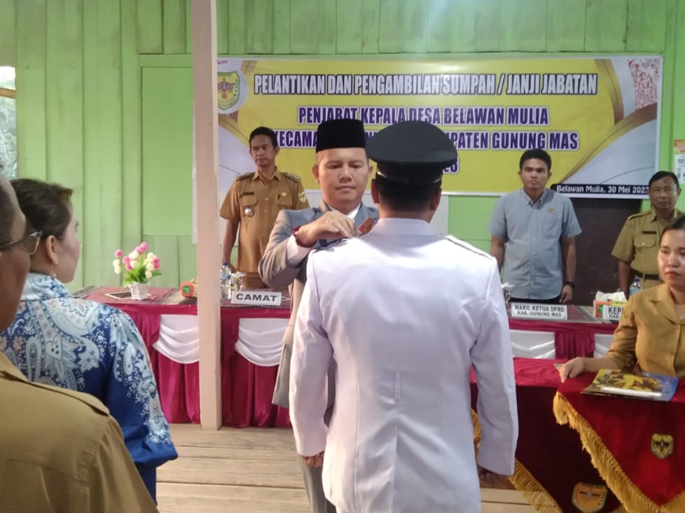 MASAPNEWS – Bupati Gunung Mas, Jaya S Monong melantik Sukmadady sebagai Penjabat (Pj) Kepala Desa (Kades) Belawan Mulya di Kecamatan Manuhing, Selasa (30/5/2023).