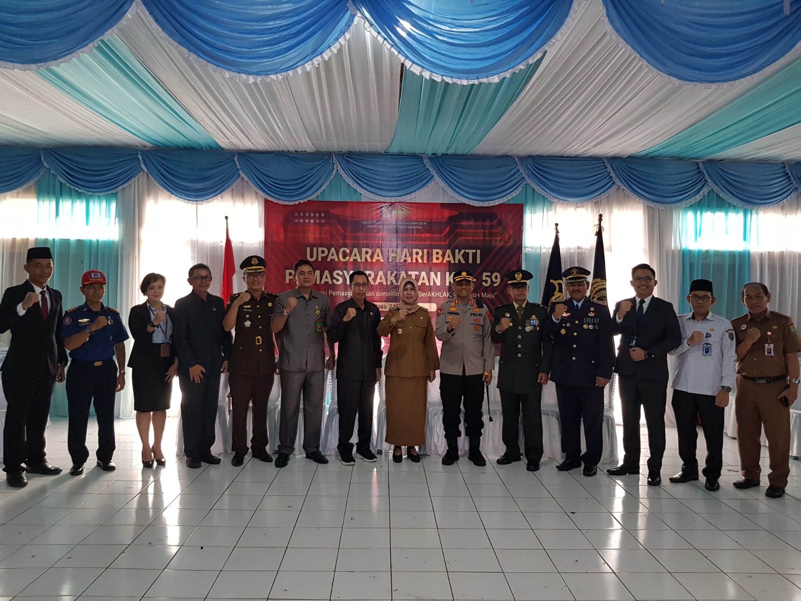 Buntok – Rumah Tahanan Negara Kelas IIB Buntok mengikuti kegiatan Upacara Hari Bakti Pemasyarakatan (HBP) Ke-59 dengan tema “Transformasi Pemasyarakatan semakin PASTI BerAKHLAK, Indonesia Maju” secara virtual di Aula luar Rutan Buntok yang terpusat di Graha Pengayoman Kementerian Hukum dan Hak Asasi Manusia, Jakarta. Selasa (02/5/2023)